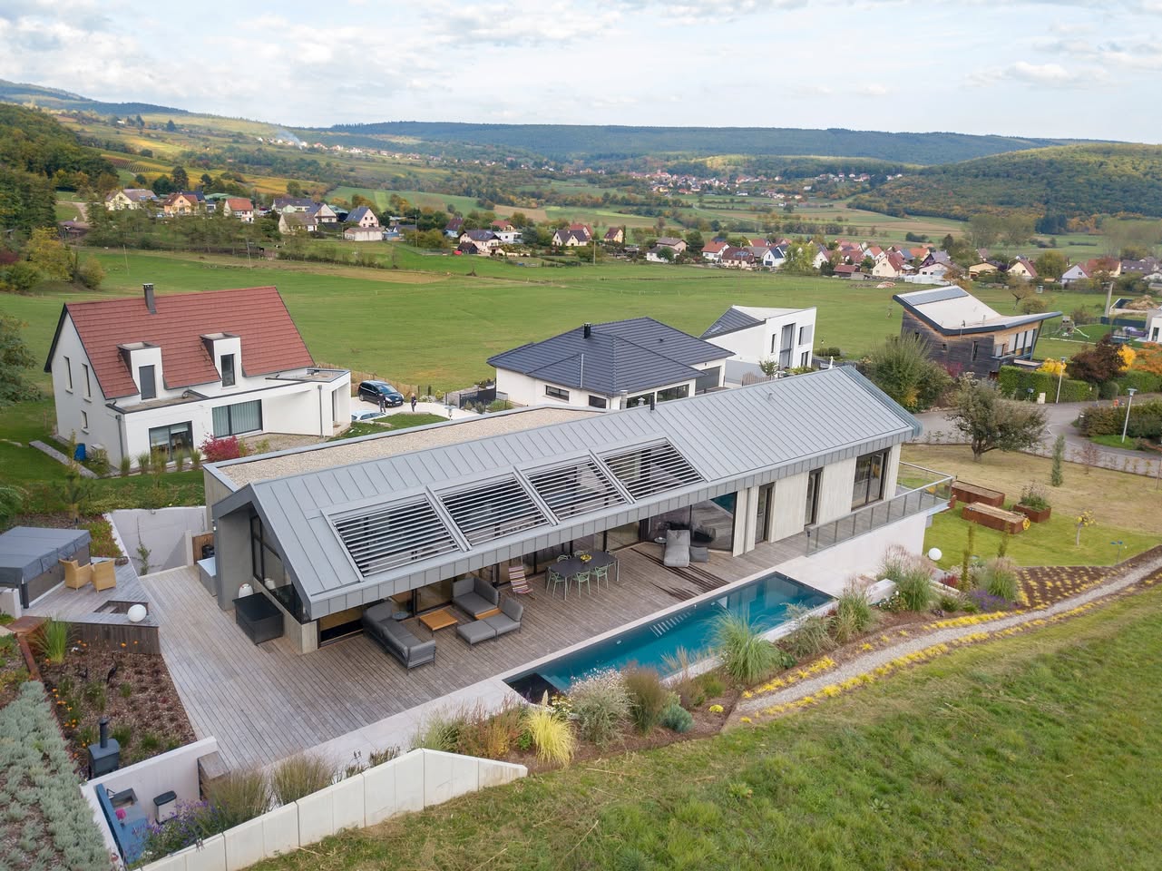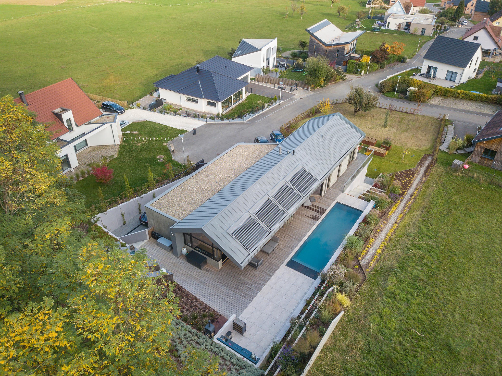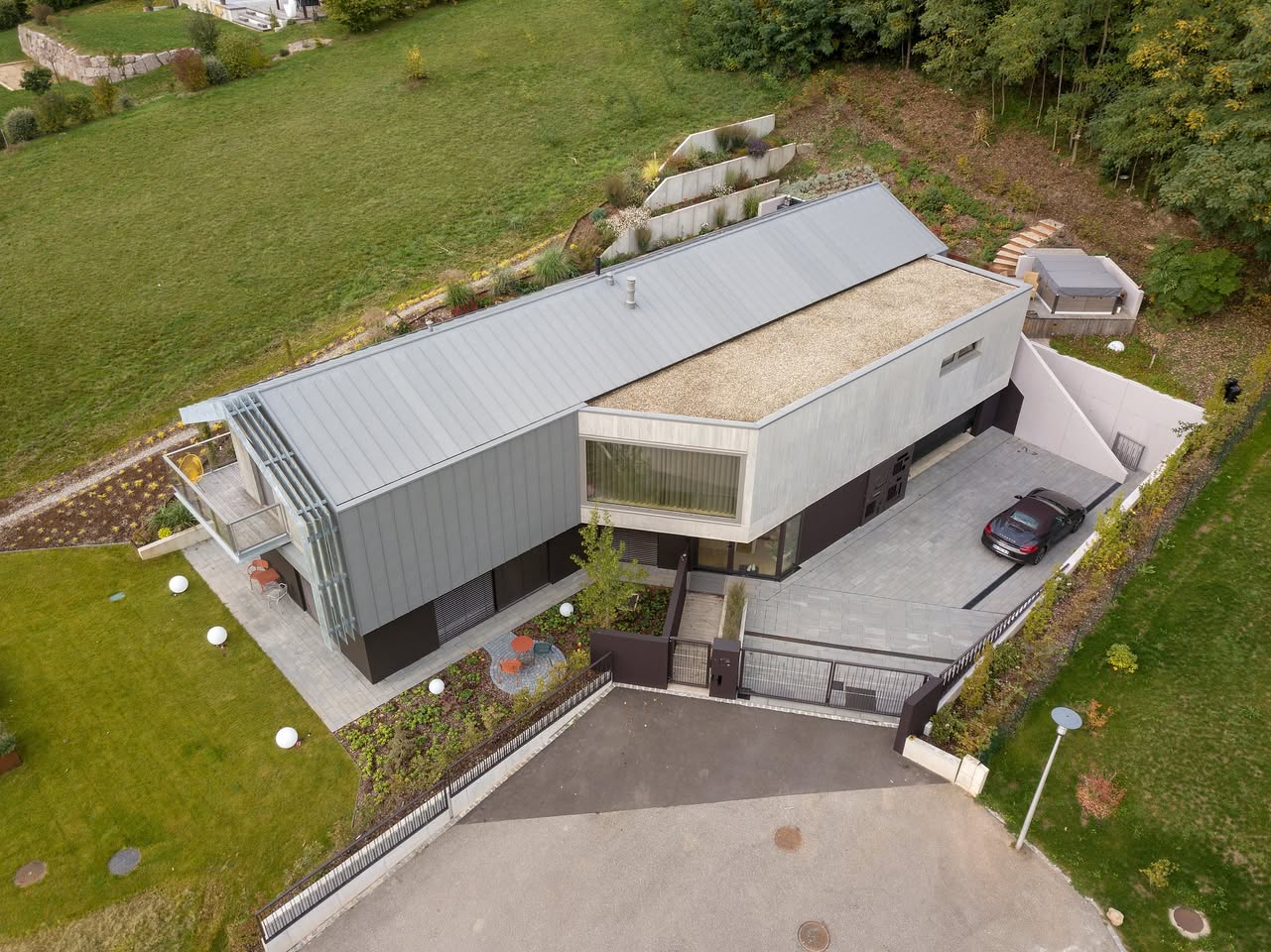 Accueil/Project/Villa H (68) – Couverture et bardage joint debout Quartz & toiture terrasse EPDM